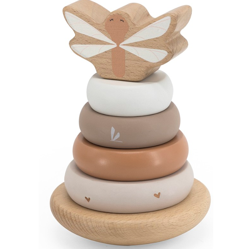 Los anillos y el bloque superior de madera son fáciles de agarrar incluso con manos pequeñas. Apilarlos del más grande al más pequeño o del más pequeño al más grande, ordenarlos por colores… tu hijo/a puede elegir lo que más le guste y a la vez practicar la coordinación ojo-mano y la capacidad de razonamiento.
