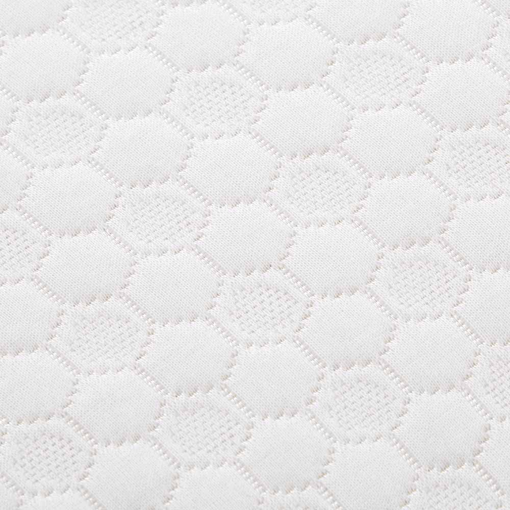 La funda de la almohada está fabricada en tejido Stretch con diseño hexagonal, muy suave, elástico y transpirable. Su composición hipoalergénica es adecuada para la piel sensible de los bebés.