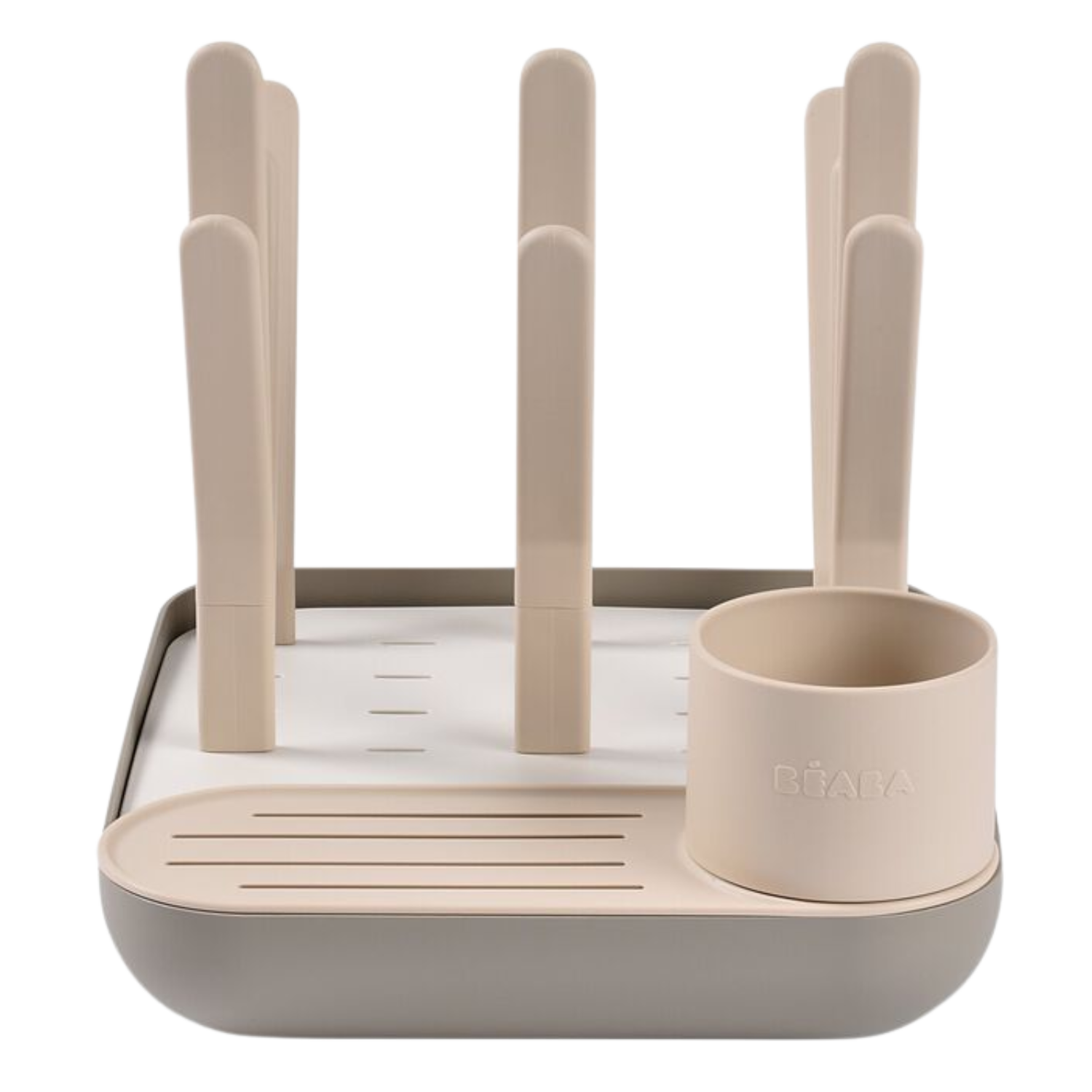 El escurridor de biberones Forest de Béaba® es una solución ideal para secar los biberones y sus accesorios de forma higiénica y aportando un toque estético a tu cocina. Para satisfacer las necesidades cotidianas, este escurridor de botellas también es compacto, fácilmente transportable y muy práctico. Modular, permite personalizar la ubicación de las ramas para adaptarlas a tus necesidades, ya sea para biberones, vajillas u otros complementos. El práctico y higiénico recipiente accesorio es perfecto para guardar cubiertos, pajitas, pipetas medicinales, etc. Su gran capacidad permite secar hasta 6 biberones grandes y diversos accesorios como tetinas, chupetes, anillas, tapones, piezas de sacaleches, etc. Su flujo de agua se optimiza gracias a una base extraíble que facilita el vaciado del agua. Fácil de guardar, todos los elementos caben en la base, por lo que es muy cómodo de llevar cuando se viaja. 9 Escalable, este escurridor de botellas también se puede utilizar para secar la vajilla de los niños. Fabricado en España, el escurridor de botellas Forêt tiene un diseño ecológico, permite una reducción del 31% de las emisiones de CO₂ (-42% para la versión montada), utiliza un 80% de cartón reciclado y está fabricado en monomaterial. Este escurridor de botellas se puede lavar a mano para garantizar una higiene impecable y un uso prolongado. Dale a tu cocina un toque de diseño y satisface las necesidades prácticas del día a día con el escurridor de botellas Béaba® Forêt.