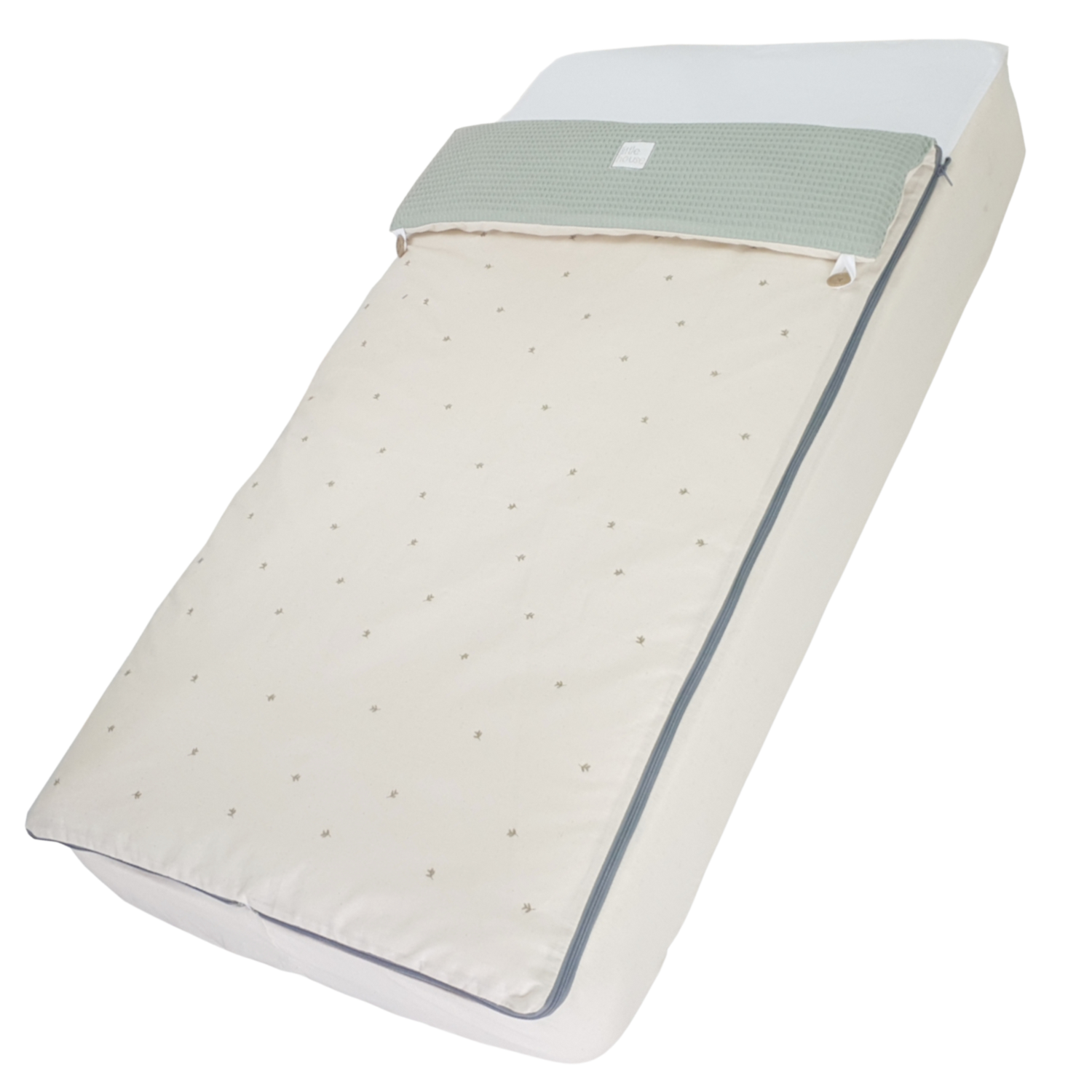 Interior 100% algodón. Bajera ajustable con cremallera